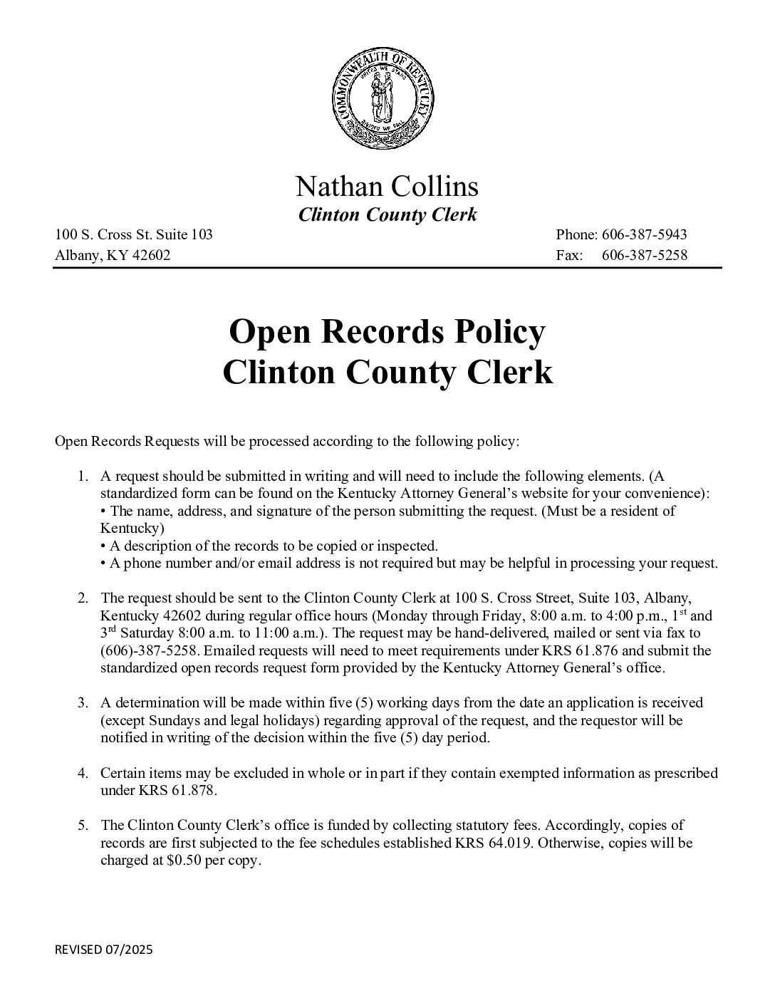 • Open Records Request